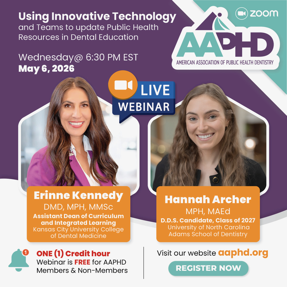 2026 AAPHD May Webinar: Using Innovative Technology and Teams to Update Public Health Resources in Dental Education